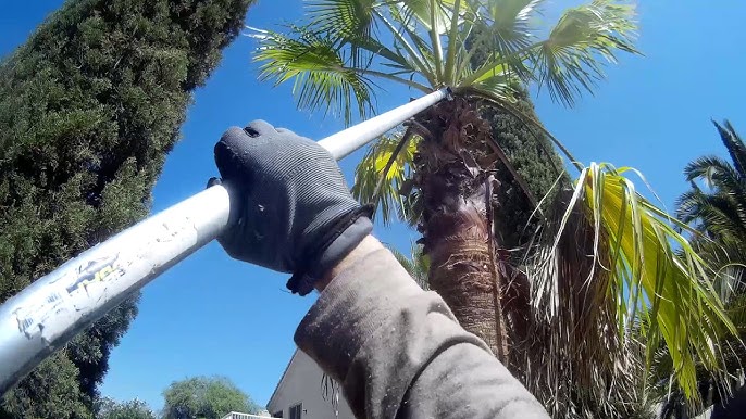 Cocos Palm Pruning Using A Home Made Pole Saw Youtube